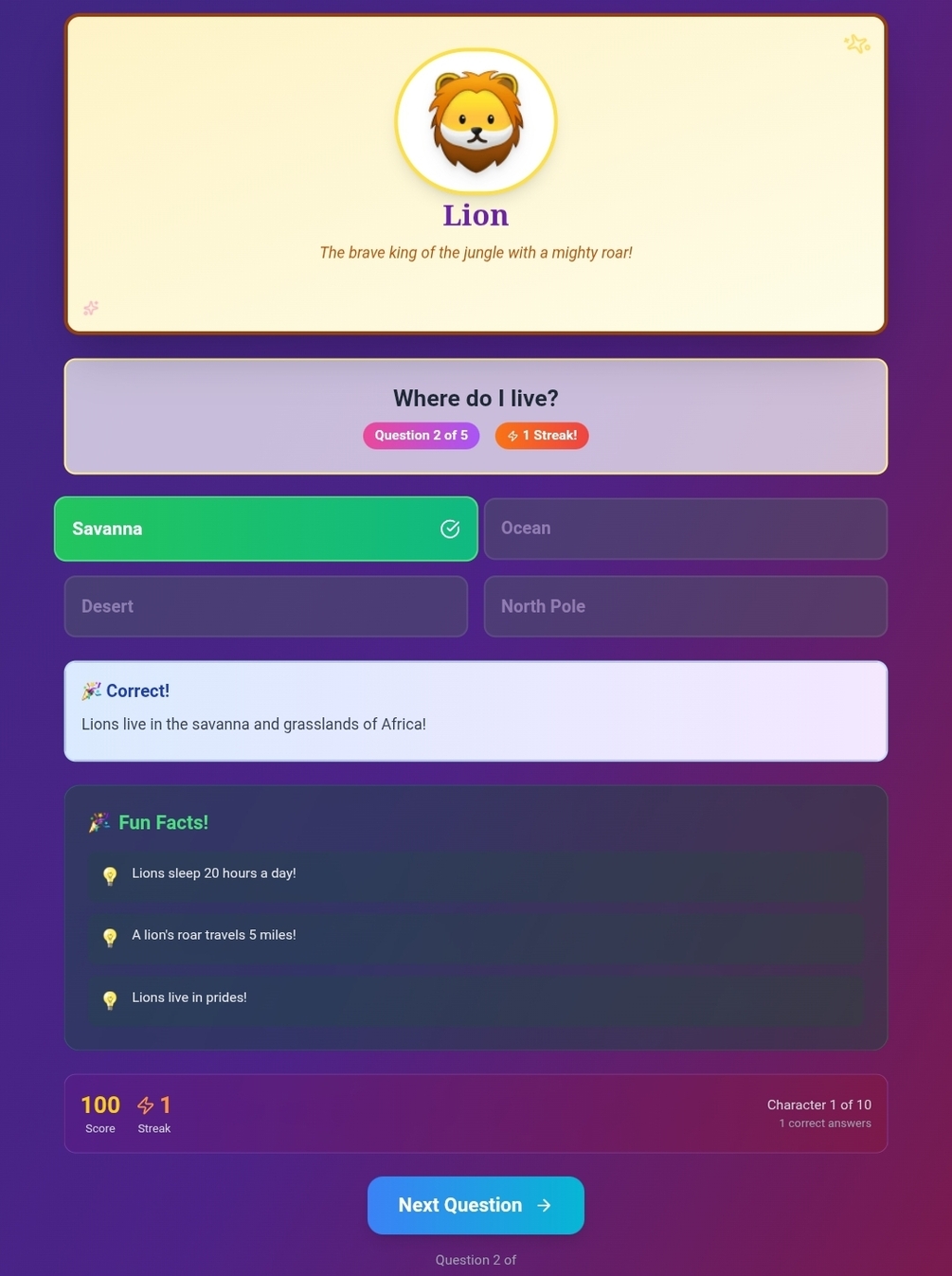 5. Learn & Grow - Read explanations and fun facts after each answer